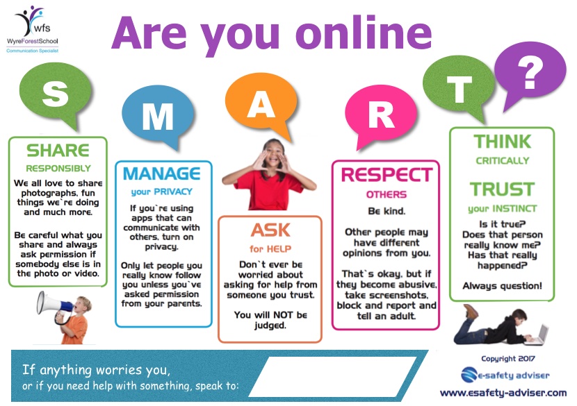Children access the internet in more ways than ever before. Therefore, it is important to give children the opportunity to learn about online safety from an early age. At Wyre Forest School, we want our learners to go on to live happy, safe and successful lives in their wider communities. We want them to leave our school as rounded young adults, ready to meet the next phase in their lives, whatever that may be. We also recognise that many of our pupils are vulnerable and will need support in engaging in and developing an understanding of learning experiences within the wider world.